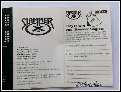 Kaset ini sememangnya mengimbau kenangan silam. Dulu beli di dalamnya ada borang untuk dapatkan singlet hitam berlogo Slammer secara percuma. Hanya perlu lengkapkan slogan seperti gambar di bawah.